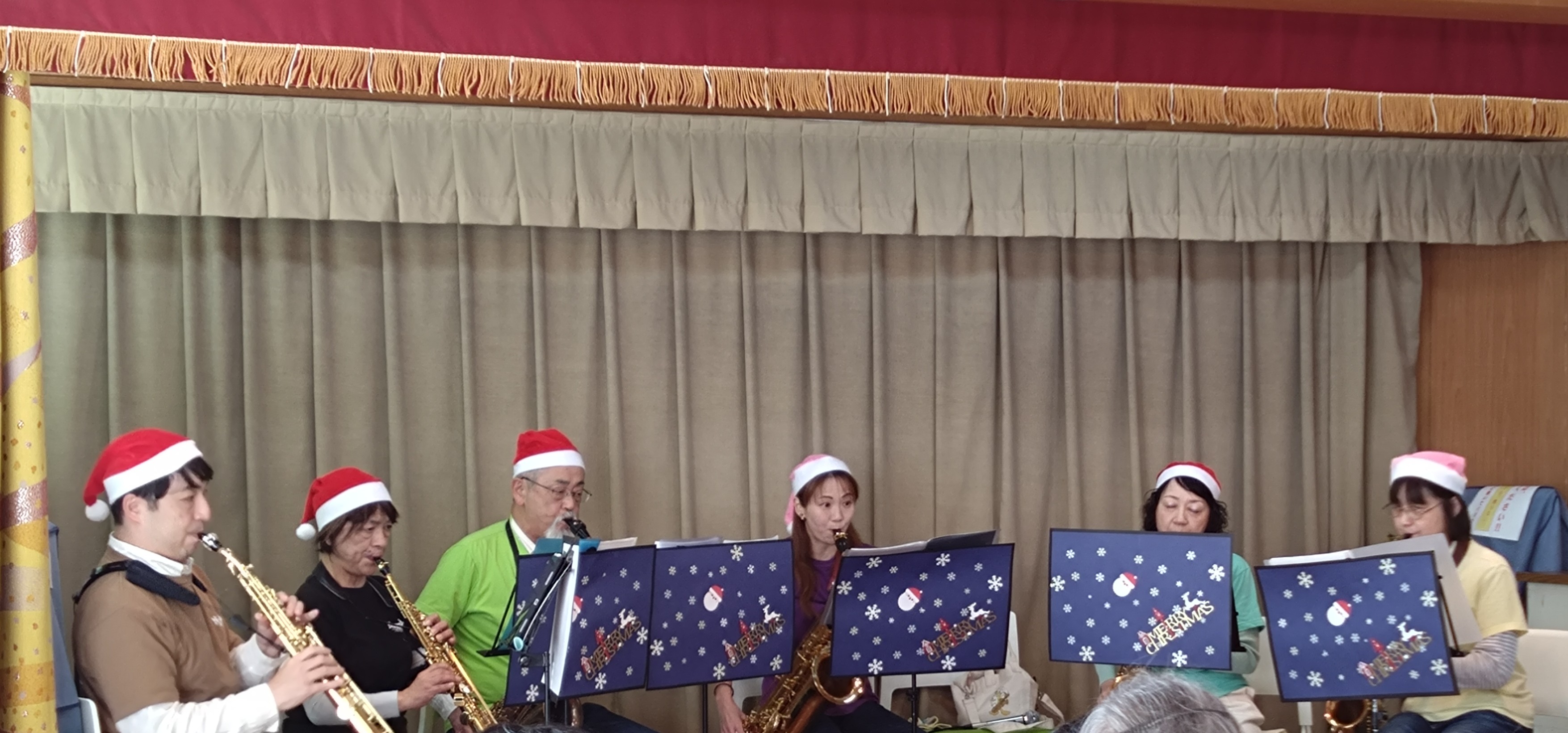 催しに訪れた皆さまの前で、「ミッキーマウスマーチ」、「クリスマスメドレー」、「ふるさと」、「世界に一つだけの花」、「となりのトトロメドレー」、「上を向いて歩こう」、「ファミリーアニメコレクション」、「残酷な天使のテーゼ」を演奏しました。