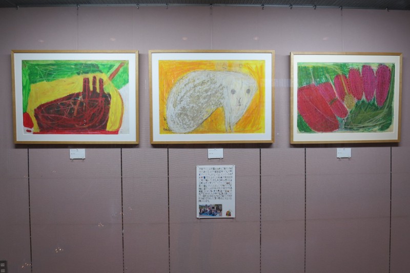 東ホワイエでふしみ学園創作班、「アトリエやっほう!!」の作品を入れ替えて展示しております。