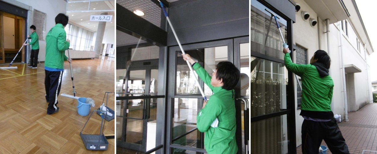 平成29年3月1日(水)、京都市呉竹総合支援学校高等部3年生の9名に、『環境・メンテナンス班 地域清掃活動』として、呉竹文化センターのガラス窓、ホワイエ等の清掃をしていただきました。呉竹総合支援学校の皆様、ありがとうございました。