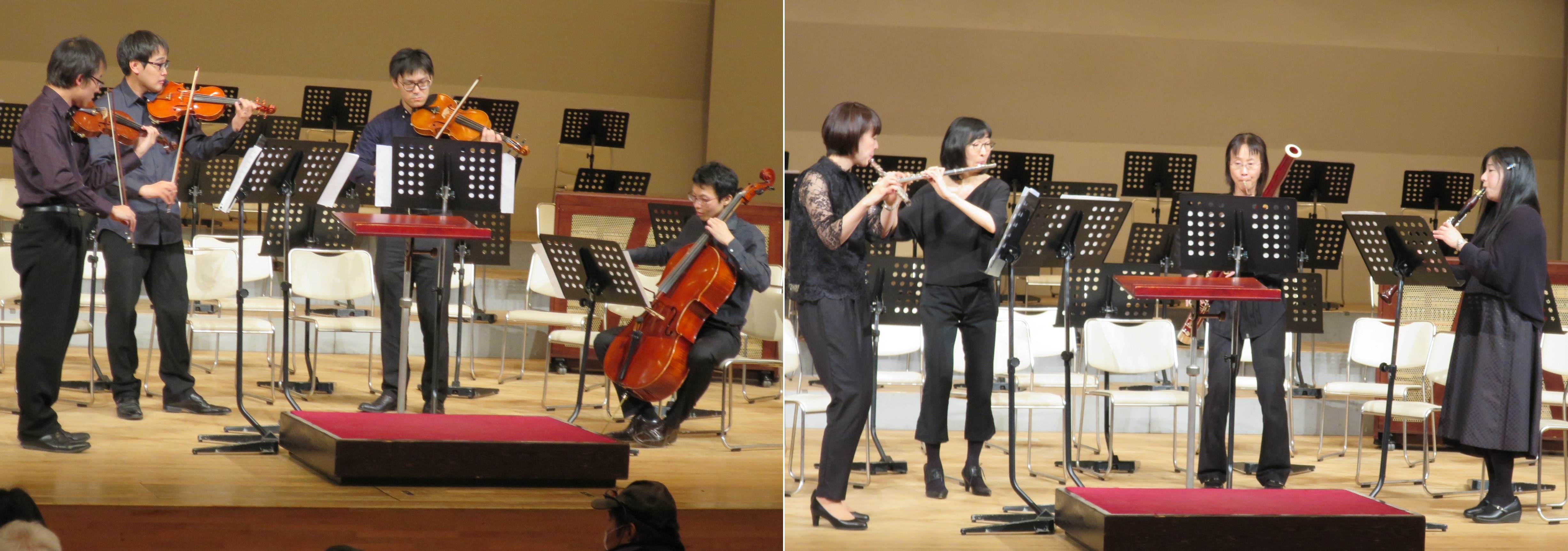 開場後にまずはプレコンサート。岡田あゆみ作曲「弦楽四重奏曲第1番」、レスピーギ作曲「シシリアンヌ」(木管四重奏)ドヴォルザーク作曲「スラヴ舞曲第3番」(同)で耳慣らし。