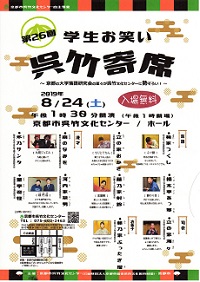 「第26回学生お笑い呉竹寄席」を開催します【8/24(土)】