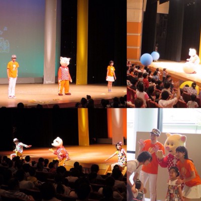 しゅんろうお兄さん、かずよお姉さん、キョートンとホールにあつまってくれたたくさんのおともだちとうたっておどっていっぱいあそびました。