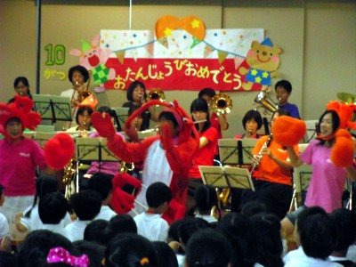 ご報告させていただきます。10月5日(木)、洛陽幼稚園より依頼をいただき10月のお誕生日会の中でミニコンサートを実施しました。