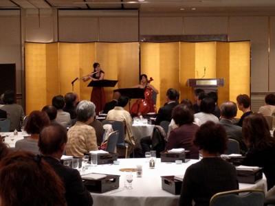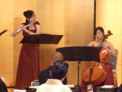 11月10日(土)に京都ホテルオークラにて開催されました民生委員伏見区大会の催しにてフルート奏者の徳本早織さん,チェロ奏者の加治屋奈美さんが
