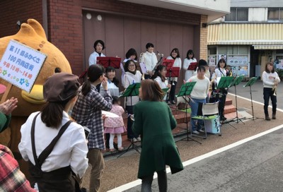 11月23日(木・祝),ふかふか屋オープン5周年記念パレードで地元のアンサンブルチーム,ふかふかアンサンブルとの共演でパレードのBGMを演奏をしました。
