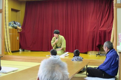 叡山舎富く楼(しょうこくていふくろう)さんには「饅頭こわい」「ときうどん」を演じていただきました。終始和やかな雰囲気でお集まりいただいた大勢の皆さんには一杯笑っていただきました。