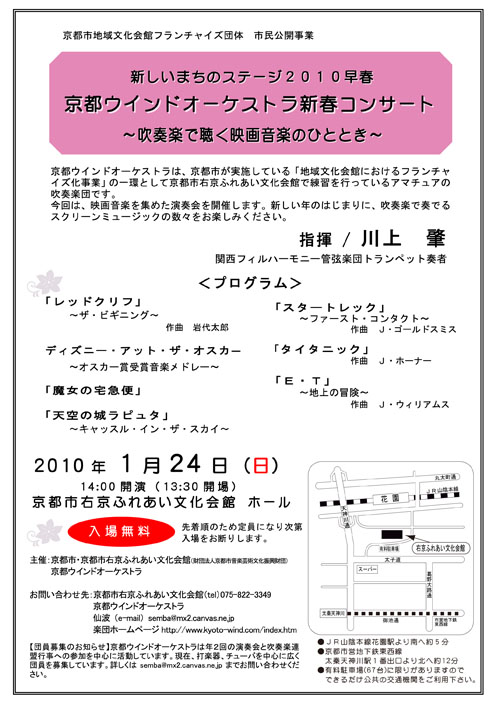 平成21年度、右京ふれあい文化会館では、<京都ウインドオーケストラ>がフランチャイズ団体として活動しています。