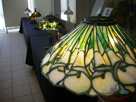 オリジナルデザインで豪華な細工が施されたフロアランプやティファニーランプの数々。