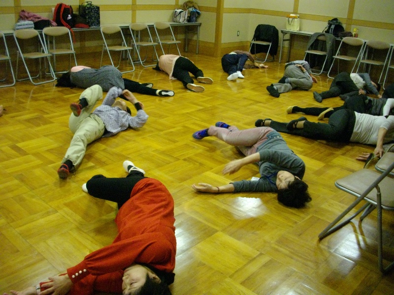 いつもと同じだけれど、このメンバーでするのは「最後」となるストレッチ、コミュニケーションゲームをこなして体と心を温めた後、本番会場となる創造活動室へ移動し、リハーサルを始めました。