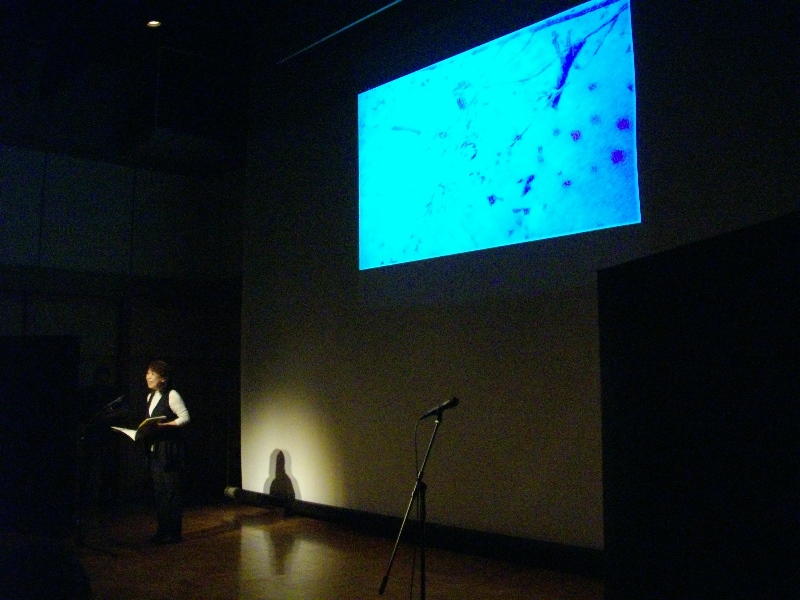 落ち着いた音楽と、受講生がそれぞれ選んだ画像を背に、あたたかく朗読していきます。