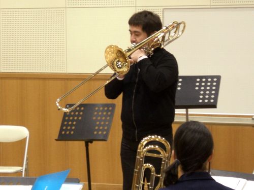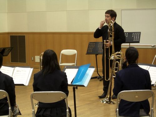 2月5日に開催した「2011年度ウエスティ吹奏楽祭」(西京区内の中学校吹奏楽部)の出演者を対象として,午前は市川智子さんを講師に迎えてフルートのワークショップを行い,午後は戸澤淳さんを講師に迎え,トロンボーンのワークショップを行いました。